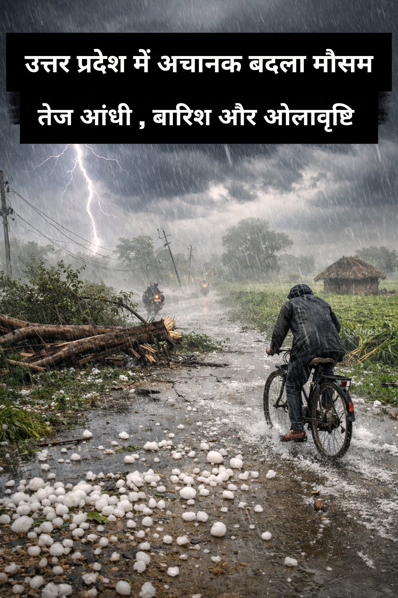 उत्तर प्रदेश में शुक्रवार सुबह अचानक मौसम ने करवट ले ली। राजधानी लखनऊ सहित 27 से अधिक जिलों में तेज हवाओं के साथ बारिश और गरज-चमक का दौर देखने को मिला। कई स्थानों पर ओलावृष्टि भी हुई, जिससे जनजीवन प्रभावित हुआ और तापमान में अचानक गिरावट दर्ज की गई। सुबह के समय जहां लोग सामान्य दिनचर्या में व्यस्त थे, वहीं अचानक बदले मौसम ने सभी को चौंका दिया। तेज हवाओं के कारण कई जगह पेड़ की टहनियां टूटकर सड़कों पर गिर गईं, जिससे यातायात प्रभावित हुआ। किसानों के लिए यह मौसम चिंता का कारण बन गया है, क्योंकि ओलावृष्टि से गेहूं और सरसों की फसलों को नुकसान पहुंचने की आशंका है। मौसम विभाग के अनुसार, यह बदलाव पश्चिमी विक्षोभ के सक्रिय होने के कारण हुआ है। इसके चलते प्रदेश के कई हिस्सों में बादल छाए रहे और हल्की से मध्यम बारिश दर्ज की गई। तेज हवाओं के कारण तापमान में 3 से 5 डिग्री सेल्सियस तक की गिरावट आई, जिससे लोगों को गर्मी से थोड़ी राहत मिली है। ग्रामीण और शहरी दोनों इलाकों में इस अचानक बदलाव का असर साफ देखा गया। जहां शहरों में जलभराव और ट्रैफिक जाम की स्थिति बनी, वहीं गांवों में खेतों में पानी भरने की खबरें सामने आई हैं। प्रशासन ने लोगों से सतर्क रहने और खराब मौसम के दौरान अनावश्यक बाहर न निकलने की अपील की है। मौसम विभाग ने अगले 24 घंटों में भी कुछ इलाकों में इसी तरह के मौसम बने रहने की संभावना जताई है। ऐसे में लोगों को सतर्क रहने की जरूरत है। Post navigation संसद मे किसानो की चर्चा पर्याप्त नही, जनप्रतिनिधि गाँवों मे जाकर किसानो की समस्याएं सुने – विवेक यादव पूर्वांचल में पहुंचेगा फ्लोरिडा का ‘सेंसेशन’ आम, प्रयागराज में तैयार हुआ मदर प्लांट